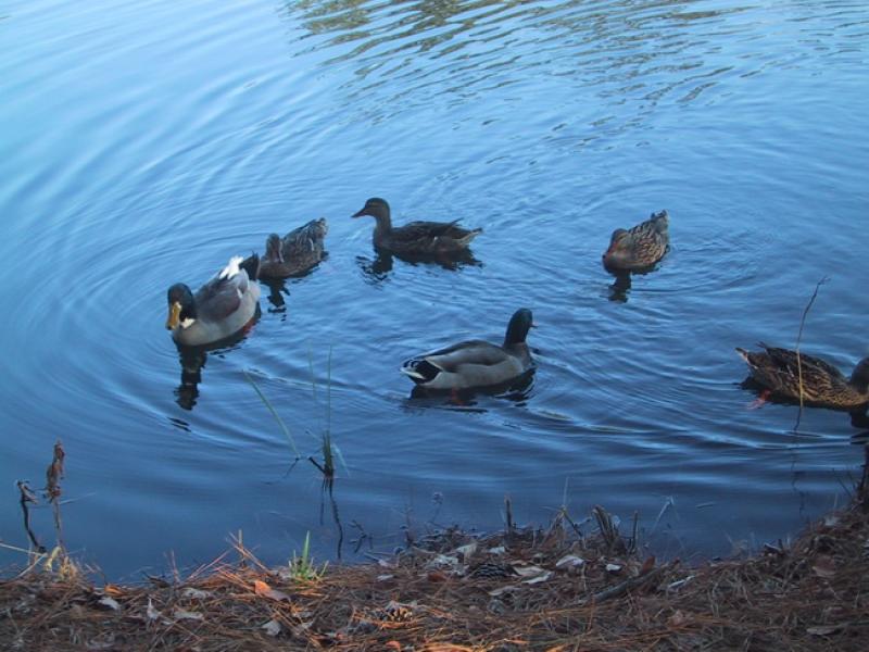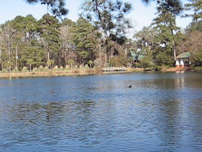 The 3-acre lake is home for fish, turtles, ducks, wading herons and alligators up to 4’ long. Seasonally, you should come across butterflies which are attracted to flowers chosen to entice them. There are feeders to attract birds, and food dispensers on the banks of the pond to tempt ducks and turtles.