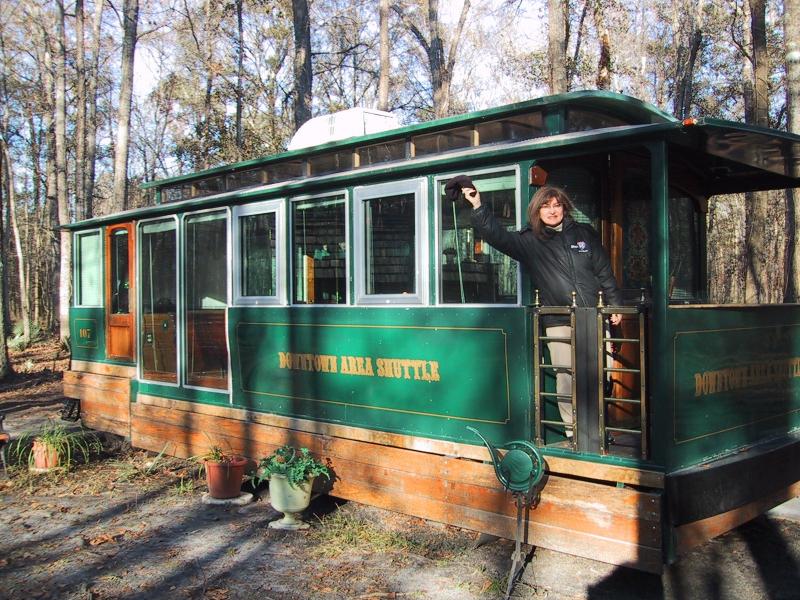 Even if you are not a camper, at this park you can stay overnight in a converted caboose, a trolley car or in a little Hansel and Gretel cabin. The caboose is actually sitting on train tracks and has a front and back platform. The pine cottage has a porch and wooden swing and just enough room for the beds. The trolley came here all the way from Charleston and is glass windowed, so you have the whole outside inside during the day but can close the blinds at night.