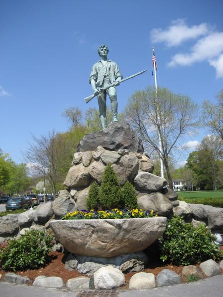 It was on the morning of April 19th, 1775 that 77 farmers and tradesmen, as part of the Lexington militia, assembled on the Common to defend their town. They wanted to prevent about 750 British light infantry from destroying a supply of arms in Concord. A statue looking like Captain John Parker stands proudly on the Green today; he was quoted as saying “Stand your ground; don’t fire unless fired upon; but if they mean to have a war, let it begin here”.