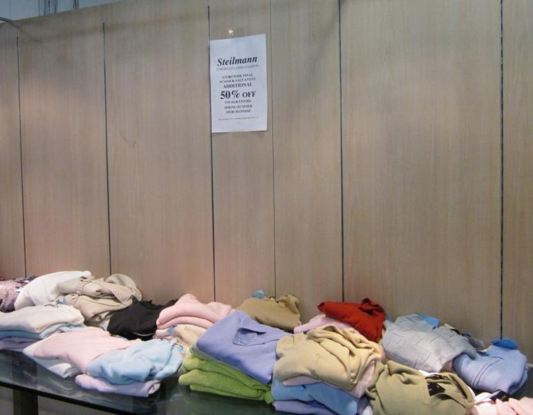 Shh!! This is one of those secret wonderful shopping spots along the road that you just have to have someone tell you about. Direct from Europe to you with no middleman, Steilmann sells exclusive quality lines from Germany (Steilmann, emozioni, Apanage, Gerry Weber, Damo). This out-of-the-way spot is where their office is located, so connected to it is a huge 10,000 sq. ft. space filled with a vast selection of their lines (sizes 4-16) and samples (6 or 8) which they sell to the public at greatly reduced prices.